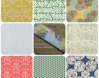 All of our covers have the same high end décor fabric on both the front and back of the covers; in addition to our covers we also offer curtains, valances, table runners and table cloths.
