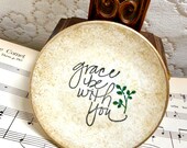 5 out of 5 starsThis adorable trinket dish offers quality embellishments and an inspiring message. Perfect for small jewelry pieces. It suits any space. It looks lovely in person.