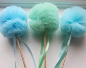 Tulle Pom Pom wands may smoosh slightly in shipping. Very easy to hand fluff and get right back to their original look! Please remove your pom wands from the box right away so they have time to "breathe" and open up.