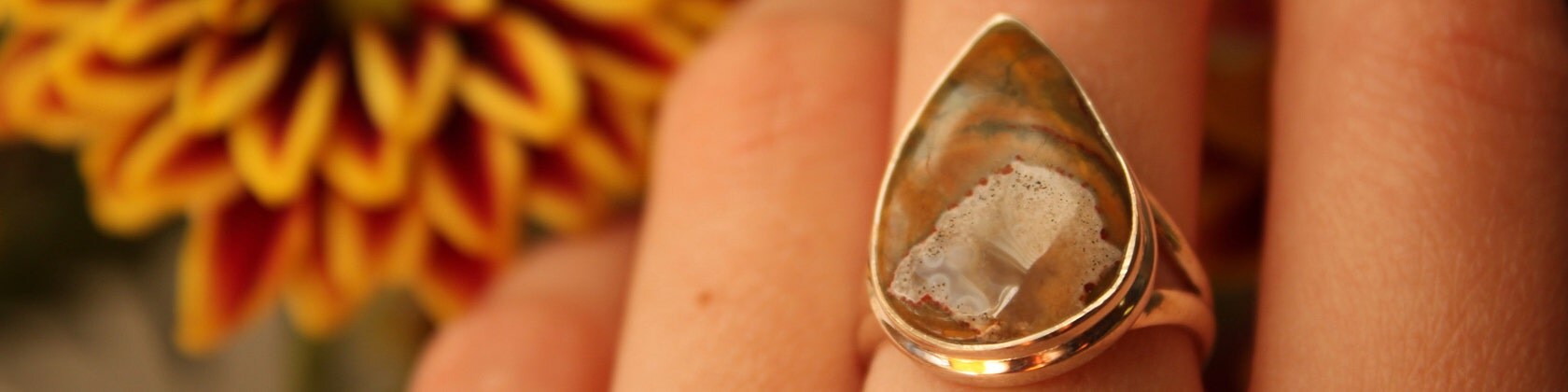 Rainforest Opal Ring Sterling Silver Boulder White Statement Tear Drop Rare Brown Gift Statement Unique Modernist 1970s 70s Size 7 1/2 P