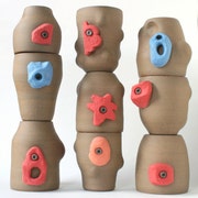 Growing up I was introduced to a lot of different art (drawing, painting, needle craft, pottery, etc. etc.) from different members of my family and in school. However, It was after I began working on a graduate degree in the sciences that I started focusing a bit more on ceramics. For me many of those other artistic mediums required the same sort of analytic, focused attention that I was burning up all day with class work and research. Working with clay can be very tactile, and in grad school I made a lot of random shapes where my fingers were doing most of the thinking because my head was done for the day. My little creature sculptures were born out of the language my hands developed during that time.