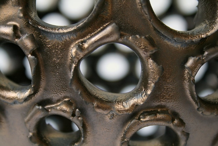 As I have found some distance from grad school, my ceramic art has become much more detail-oriented. My grad work covered phenomenon deeply related to the way atoms are arranged in metals, and I spent many hours staring at these geometric patterns over the course of my studies. Now, I spend much of my time in the studio punching divots or pierced holes into these same patterns. I have recently started a board on pinterest (rdboyer or 2nd "shop website" link on left) called "Materials" that contains images representing some of my scientific inspirations.
