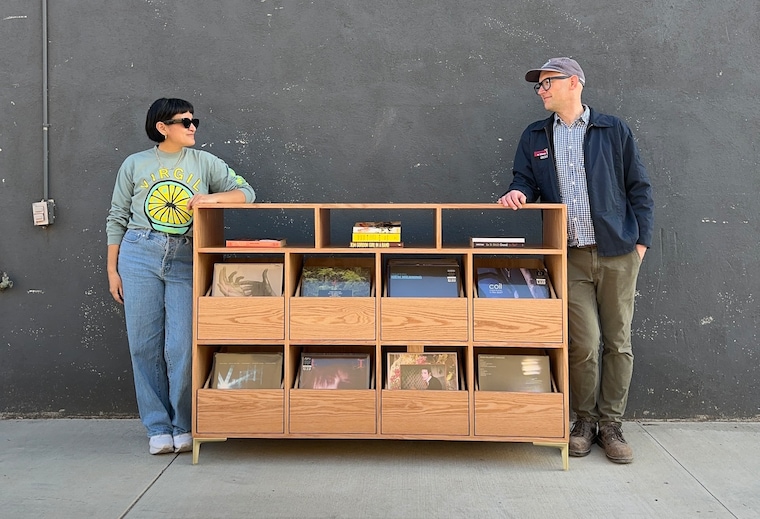 Paul handcrafted a bespoke 12-drawer record storage cabinet for Dy’s LP collection, sparking a small business that has led to over 1,300 custom units built and shipped across the US. Together, their partnership blends a love for woodworking with an audiophile's obsession for records, resulting in meticulously crafted furniture for vinyl collectors everywhere.