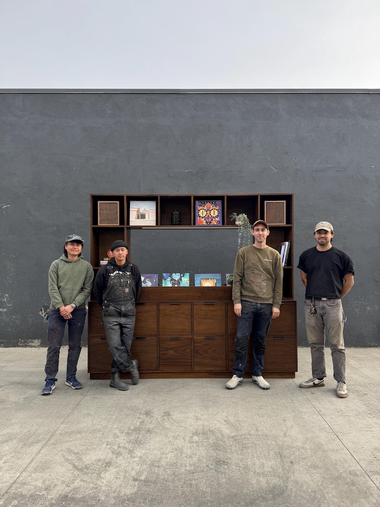 They could not do this without Alyssa, Cathy, Charlie, Eduardo, Geoff, Lily, Rhys, Ryan, Scott, Shelly and Vy—who work alongside Paul to handcraft these custom record storage cabinets—all built exclusively in Los Angeles. Dy runs R/D’s business operations and marketing.