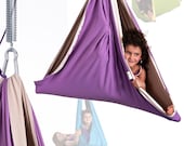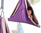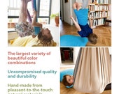 Using simple materials at home, I made my first hammock, adding gentle bounce and building a sturdy frame with help from my father. It worked beautifully, and that first design became the foundation for the swings I still make today.