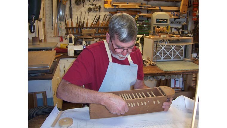I'm a real one-man-shop. I do all the research, all the designing, all the creating, all the wood milling, all the carving, all the sanding, all the finishing, all the sound clip recording, all the repair log writing and all the web work. There's only one thing I don't do. My wife the accountant insists on doing the books.