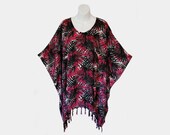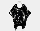 5 out of 5 starsWhite tracery outlines huge flowers on black background. Gorgeous, graceful pattern on sell made rayong poncho. Nice enough for casual entertaining! Thanks very much!