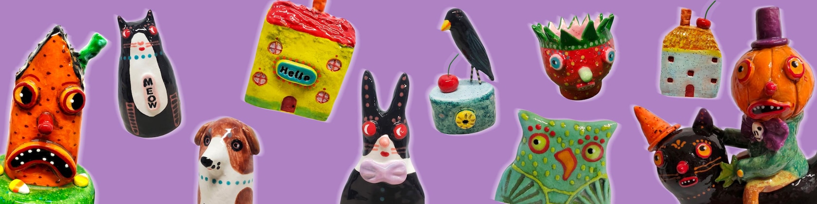 Na het behalen van een diploma in schilderen, bleef ik mijn liefde voor oppervlakteontwerp nastreven en uiteindelijk mijn handen in klei steken. Het is al vele manen geleden dat ik een plaat klei tussen de houten stokken heb uitgerold, maar mijn liefde voor klei is er niet minder op geworden.