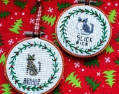 5 out of 5 starsThis is the cutest ornament and so well made! The cross stitch people and dogs look so much like the photos I sent. Order arrived quickly and was packaged beautifully! I cannot recommend this shop or this adorable ornament enough.