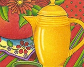 Within these "walls" you will find limited edition giclee prints from my original drawings and paintings. If interested, email me to check for availablility of the originals. Many handcrafted items of both aesthetic and practical value are in the works, all created with the finest materials available. My belief is that if it has a surface, it needs paint and that art is not something to fear, but to live with. Cards are coming too, folks, so check in frequently. Thank you and enjoy a nice little browse.
