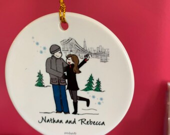 Engaged, winter engagement, NYC engagement, central park, brooklyn bridge, Engaged Christmas Couple, Ornament, Custom Christmas Engagement