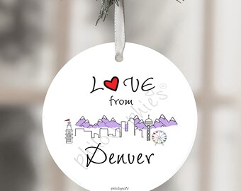 Love from Denver,Hometown, Homesick, philoSophie's illustration Love Ornament with Gift Box, Pandemic Gift, Under 20 Dollars Gift