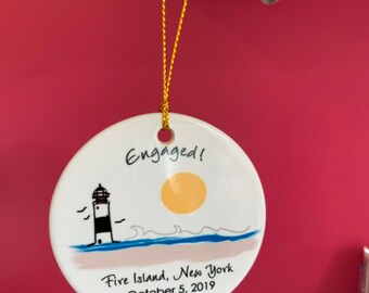 Engaged, lighthouse, engagement, beach engagement, fire island, hamtpons, Christmas Couple, Ornament, Custom Christmas