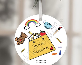 Front Line Hero, philoSophie's illustration 2020 COVID Christmas Ornament with Gift Box, Pandemic Gift, Teacher Gift, Under 20 Dollars Gift