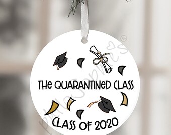 Grad, Quarantine Class, philoSophie's illustration 2020 COVID Christmas Ornament with Gift Box, Pandemic Gift, Class, Under 20 Dollars Gift
