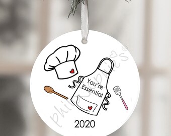 Front Line Hero, philoSophie's illustration 2020 COVID Christmas Ornament with Gift Box, Pandemic Gift, Chef, Baker, Under 20 Dollars Gift
