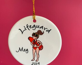 Lifeguard Decor, Personalized Christmas Ornament, , Custom Christmas, Decorations, Christmas Tree Decor, School Colors, swim