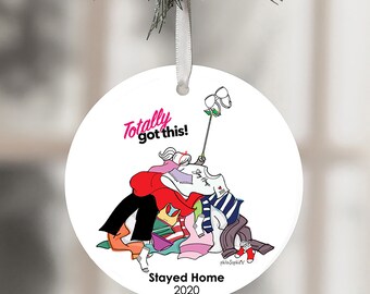 Covid Christmas philoSophie's illustrated, 2020 COVID Ornament with Gift Box, Pandemic Gift, Stayed Home, Under 20 Dollars Gift