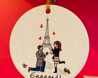 Fall in paris, Paris engagement, engaged, ( scene) , Ornament, Custom Christmas Engagement Decorations, Decorations