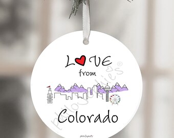Love from Colorado,Hometown, Homesick, philoSophie's illustration Love Ornament with Gift Box, Pandemic Gift, Under 20 Dollars Gift