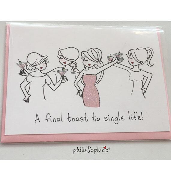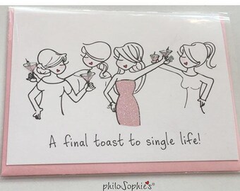 PACK OF 3 Wedding Shower Cards, Bride To Be Party Cards, Bachelorette Party Gift, Final Toast to Single Life, Blush And Glitter Bride Cards