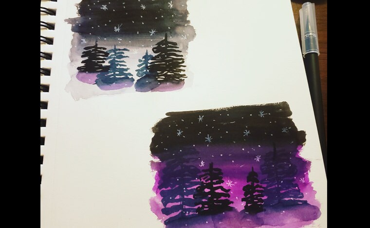 My first time playing with watercolor. I love this technique so much I turned them into greeting cards!