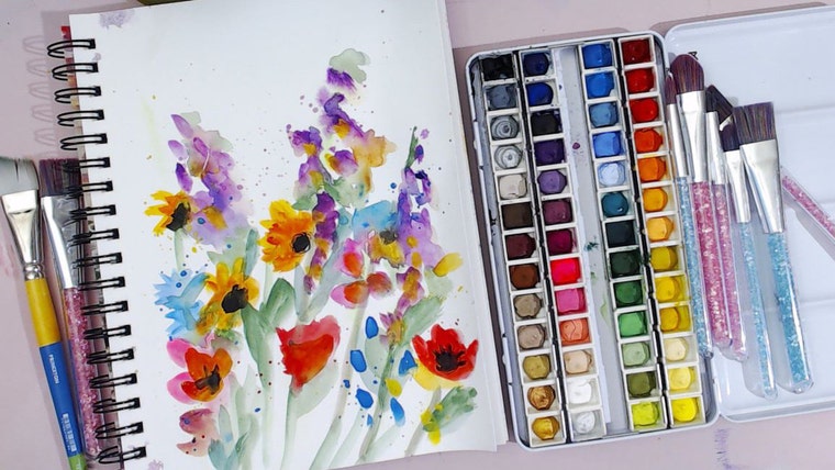 Creating beautiful messy abstract wildflowers and a look at my adorable paint palette! -