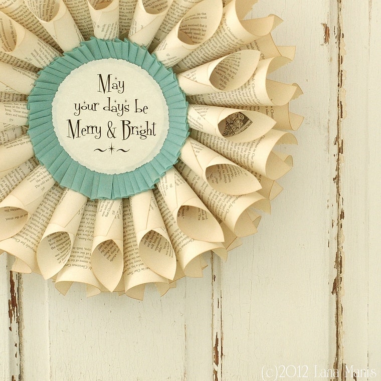 I enjoy making eco-friendly wreaths from antique and vintage books, hand cut paper art, handmade valentines, paperweights, soldered charms with a paper focal piece, note cards, and other flights of paper fancy. These handmade creations will add the perfect whimsical touch to your homes whether they be eclectic cottage, simple farmhouse, Paris flea market, shabby chic or vintage in style. Please check back often to see what's just been listed. Your interest and patronage are very much appreciated by this self-taught, work-at-home artist, wife, and mom! :)
