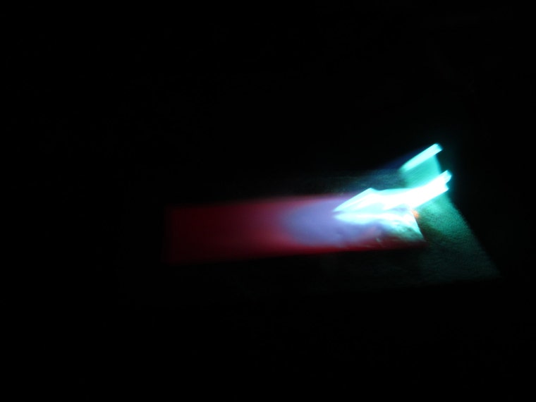 Annealing a copper pipe at night. It is easier to see the metal reach the rose red color needed to soften it. -