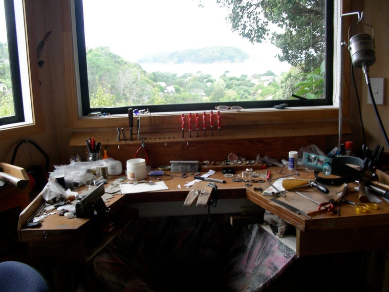 I work from two studios on opposite sides of the world; South Bend, IN, USA from May through October and Hahei, Coromandel Peninsula, New Zealand from November through April.