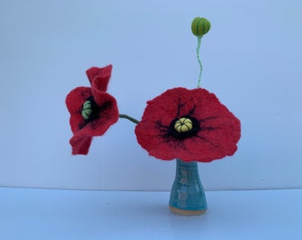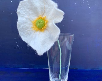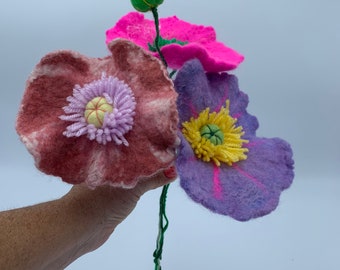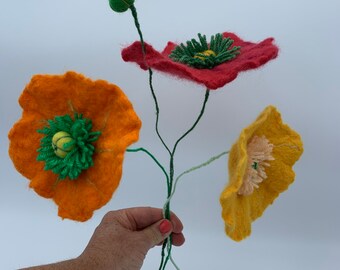 Large poppy flower, felt poppy stem, merino wool felt poppy, flower decoration