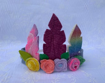 Felt feather headband, dress up headband, felt and flower headband, festival accessory