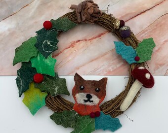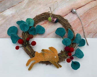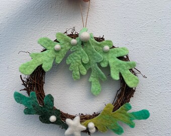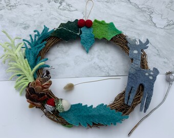 Handmade felt Christmas wreath, handmade Christmas, rustic felt wreath