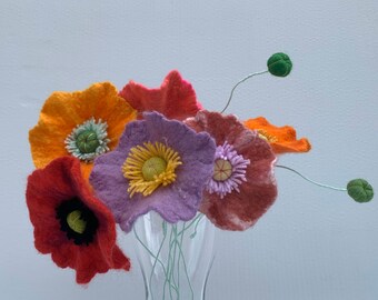 Bunch of large poppy flowers, felt textile flowers, merino wool felt poppy, flower decoration
