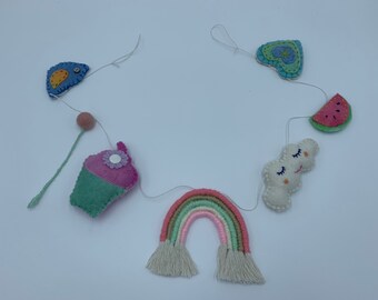 Felt and macrame rainbow garland, rainbow bunting, rainbow cloud star garland