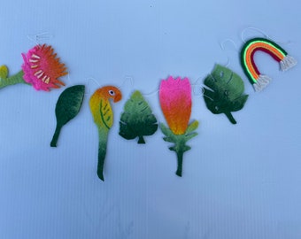 Tropical botanical felt garland, unique handmade felt bunting, botanical wall decor