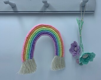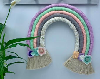 Macrame rainbow wall hanging, pastel macrame wall hanging, rainbow wall hanging in pastel colours