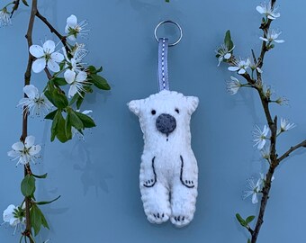 Polar bear keyring, felt polar bear, handmade key holder