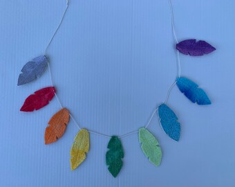 Felt feather garland in rainbow colours, feather bunting, feather garland