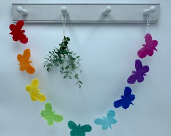 Felt butterfly garland in rainbow colours, rainbow butterflies, felt bunting