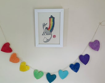 Felt heart garland in rainbow colours, felt bunting, felt rainbow hearts