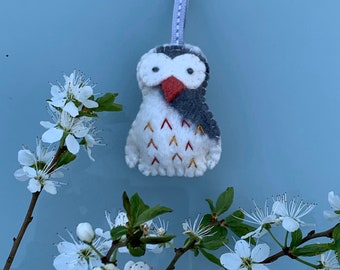 Felt puffin keyring, handmade key holder, puffin decoration