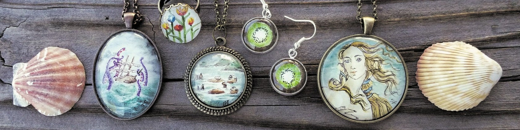 -My watercolor jewelry is splash/rain-resistant but should be dried immediately to prevent possible water damage to the miniature painting.