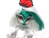 5 de 5 estrellasKALETTE es su nombre ahora. Ella es excepcional. A primera vista no iba a ir a por ella, pero cuando hice clic en su foto y las vi todas, no me resistí. Ella es espectacular. El arte es de primera línea desde la parte superior de su cabeza hasta su hermoso atuendo. Estoy asombrado de ella y maravillado. Estoy tan feliz que me aventuré a echar un vistazo más a fondo. Me siento muy afortunado de tenerla en mi enorme colección de OOAKs. ¡Incluso encontré el patrón para su atuendo y lo compré para hacer más para otras muñecas!