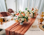Rustic Cotton Terracotta Tablecloth Runner, Burned Orange Cheesecloth Table Linen, Cinnamon Wedding Table Gauze, Rust Head Table Centerpiece