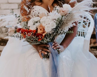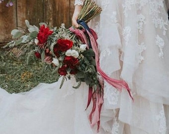 2" Bridal Bouquet Ribbon, Dusty Rose Silk Ribbon, Blush Pink Ribbon, Dusty Blue Ribbon, Gray Cotton Ribbon, 1" Cotton Ribbon, 3" Blue Ribbon