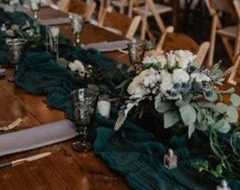 Dark Green Wedding Table Runner Gauze, Forest Green Gauze, Green Rustic Wedding Décor, Moss Green Table Runner, Hunter Green Cheesecloth