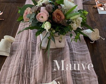 Mauve Wedding Table Runner Gauze, Rose Gold Runner, Rustic Wedding Table Centerpiece Decor, BOHO Beach Wedding, Nude Hand Dyed Cheesecloth