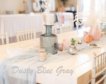 Dusty Blue Gray Table Runner, Gauze Runner, Wedding Decor, Cheesecloth Table Runner, Rustic Wedding, Party Decor, BOHO Wedding Decor 2020