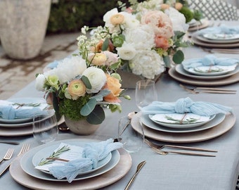Light Dusty Blue Wedding Napkin, Dusty Blue Wedding Table Linen, Vintage Rose Gauze Table Runner, Rustic Barn Wedding, Event Party Décor